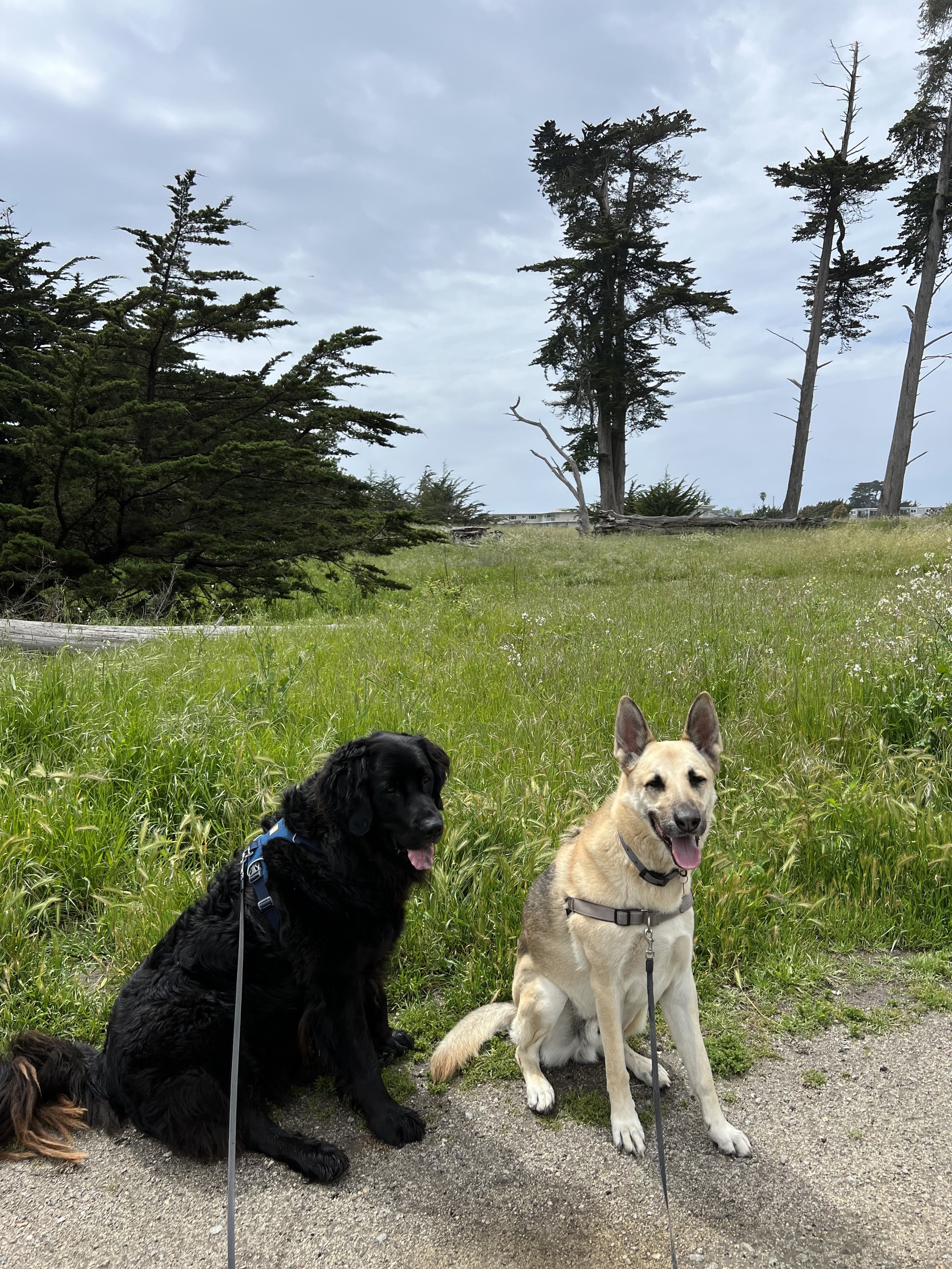 We love 4 legged friends! On the left is Biggie, you might see him walking the cliff above Steamer Lane looking out for his mom and dad in the water below. On the right is Howie, he lives in LA with his mom and dad and loves to find sticks and go on w-a-l-k’s. Say hello if you see them around!